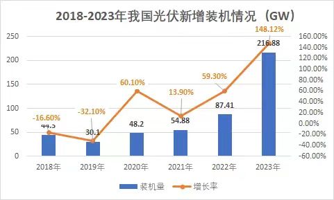 裝機(jī)量再度刷新!光伏市場持續(xù)火熱! 1月26日,國家能源局發(fā)布2023年全國電力工業(yè)統(tǒng)計(jì)數(shù)據(jù)。2023年1~12月光伏新增裝機(jī)216.88GW,同比增長148.12%。 去年,對于光伏行業(yè)來講是爆發(fā)式增